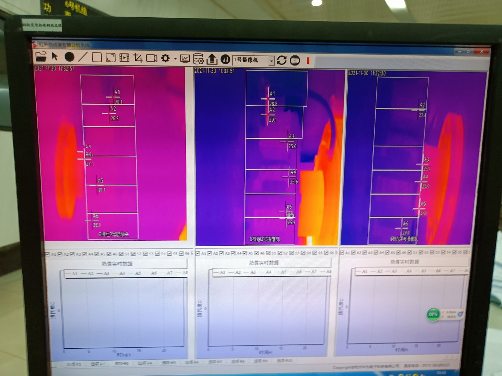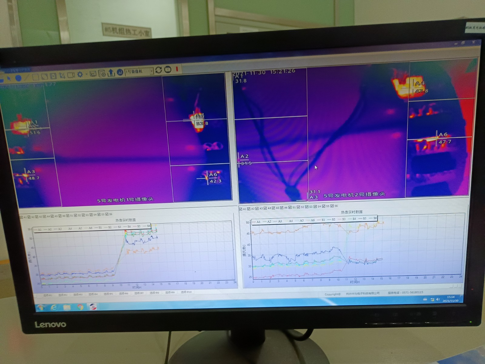 2021年11月,浙江浙能溫州發(fā)電有限公司5、6號發(fā)電機合計完成增補安裝發(fā)電機碳刷紅外監(jiān)測熱像儀4套,畫面清晰穩(wěn)定,溫度監(jiān)控精準;并將現(xiàn)場溫度報警傳入DCS控制系統(tǒng)中,更好的監(jiān)測碳刷運行情況。